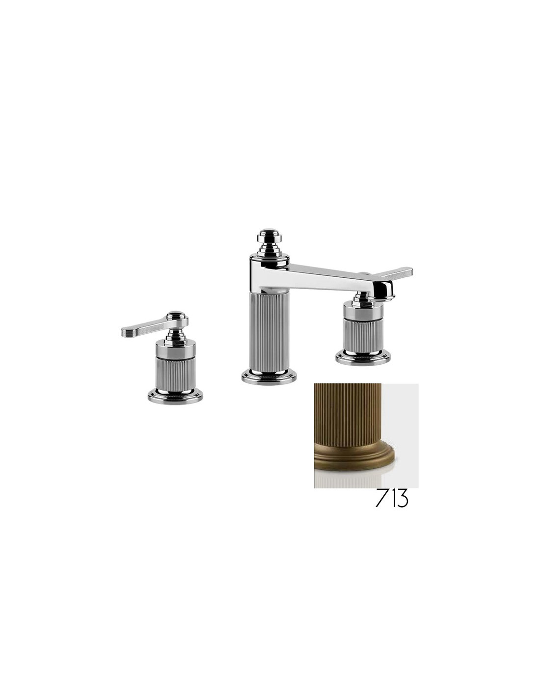 Miscelatore medio a 3 fori per lavabo, di gessi, serie Venti20, codice 65012, in ottone verniciato, con scarico e flessibili di collegamento