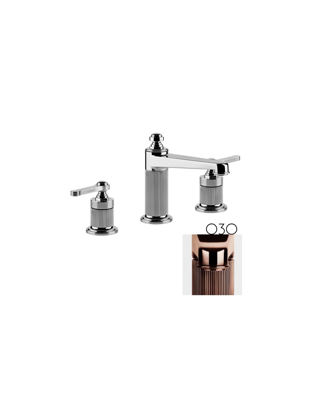Miscelatore medio a 3 fori per lavabo, di gessi, serie Venti20, codice 65012, in ottone verniciato, con scarico e flessibili di collegamento