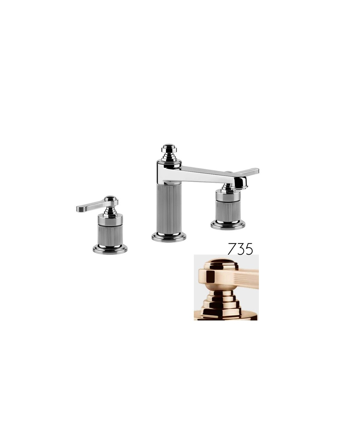 Miscelatore medio a 3 fori per lavabo, di gessi, serie Venti20, codice 65012, in ottone verniciato, con scarico e flessibili di collegamento