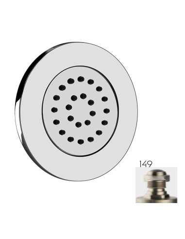 Soffione laterale orientabile, di Gessi, parte esterna codice 32982, parte incasso codice 32985.