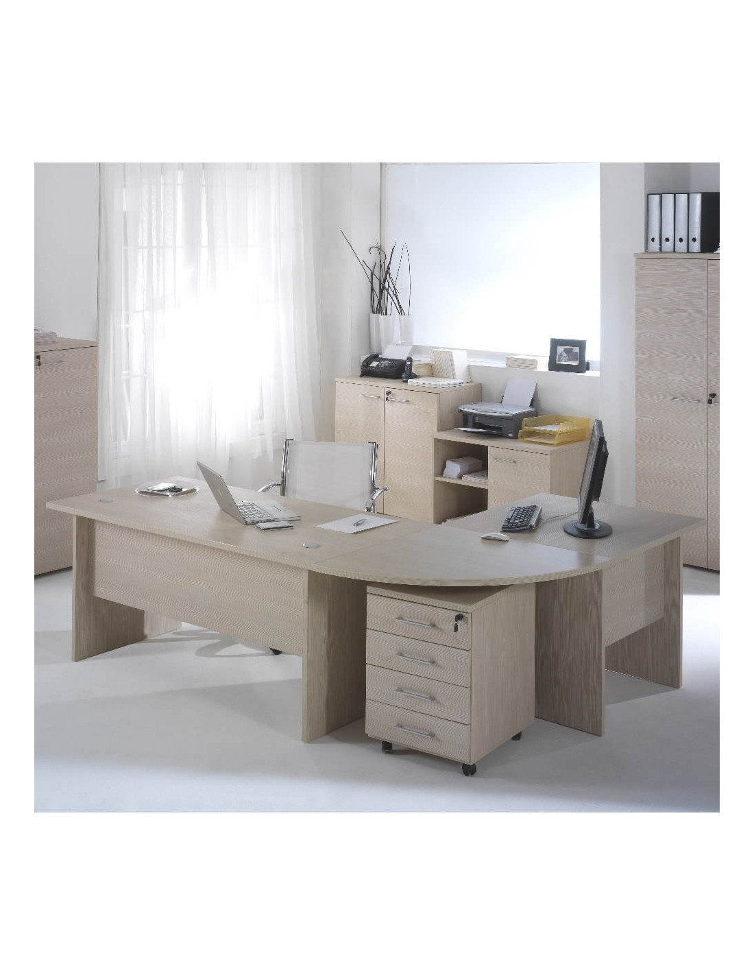 Scrivania pannellata, top in nobilitato melaminico antimacchia, antigraffio, spessore piano 2,5cm., bordi perimetrali con abs.