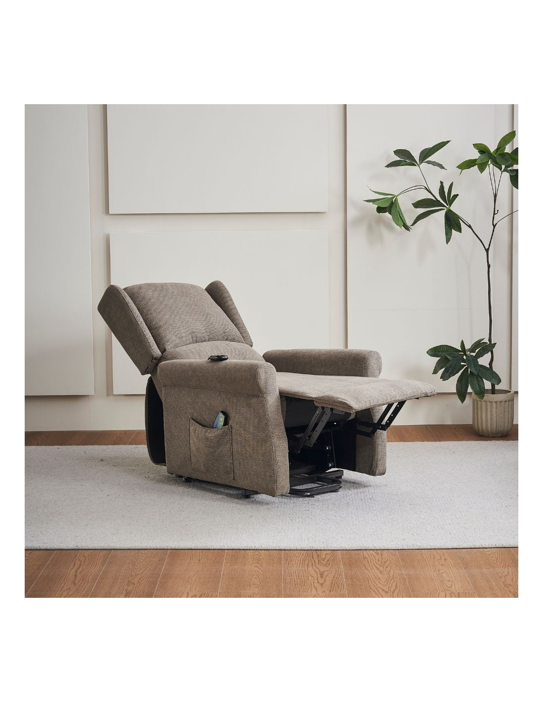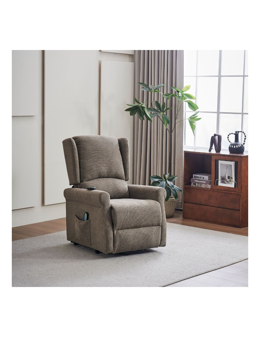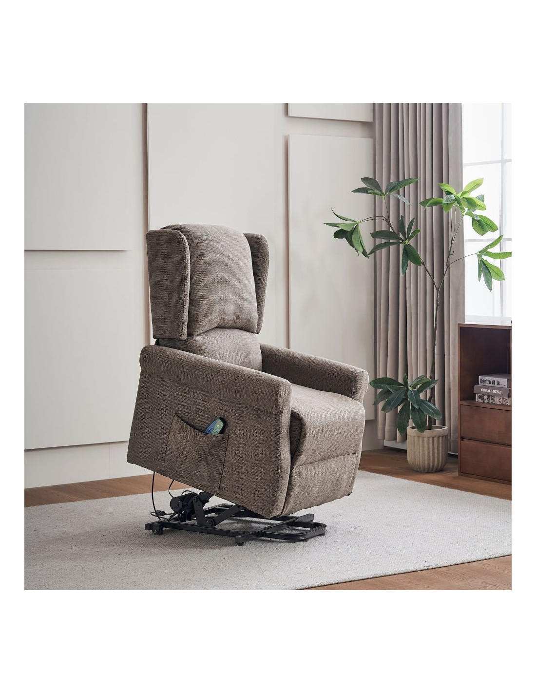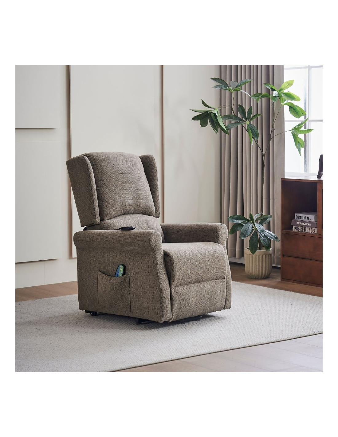 Poltrona alzapersona Tasmania con recliner elettrico 2 motori e 8 punti di massaggio in tessuto coffee