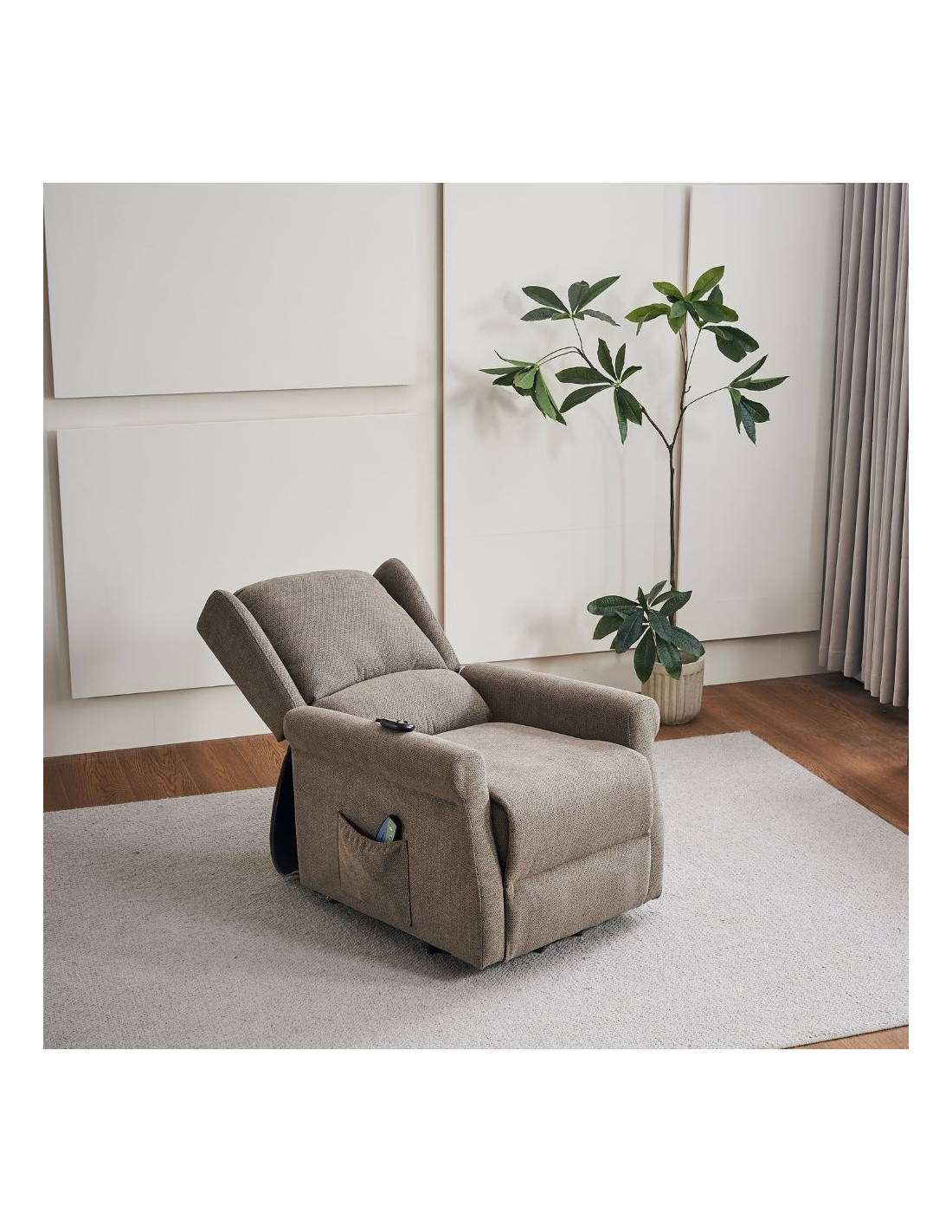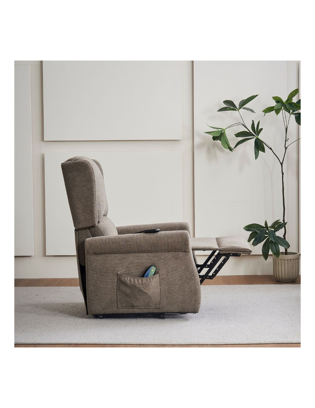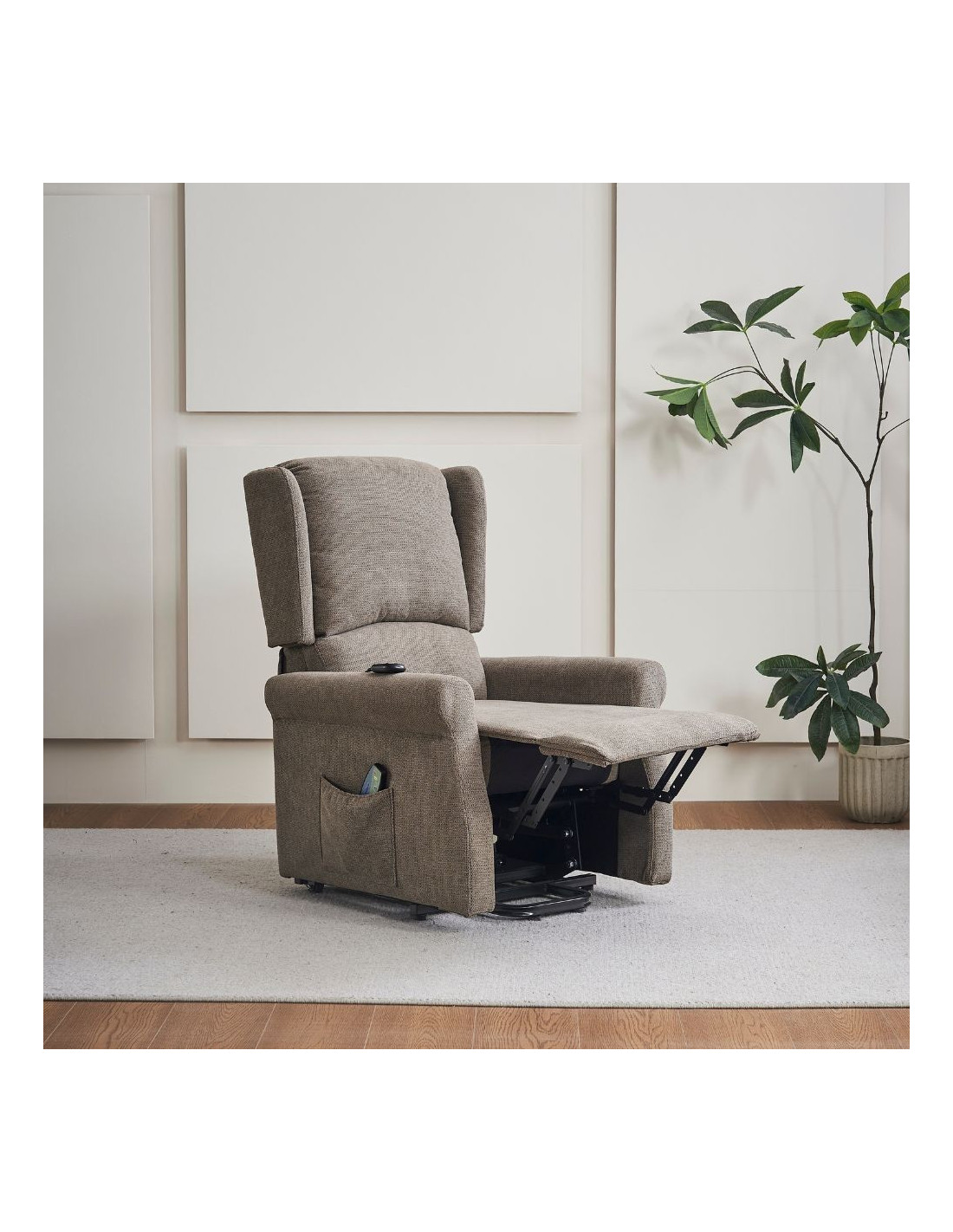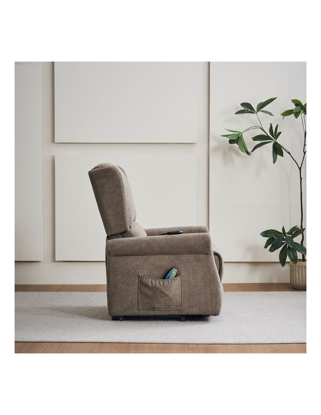 Poltrona alzapersona Tasmania con recliner elettrico 2 motori e 8 punti di massaggio in tessuto coffee