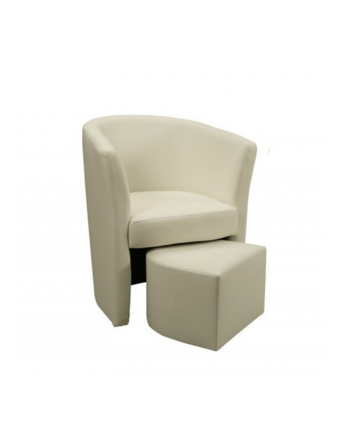 Poltrona imbottita da salotto in ecopelle avorio Pegasus dotata di pouff interno estraibile grande comodita con poco ingombro perfetta per sale riunioni e convegni Misure poltrona: - Larghezza 62 cm, - Profondita 62 cm, - Altezza 76 cm Misura pouff: 41x40xh.30 cm