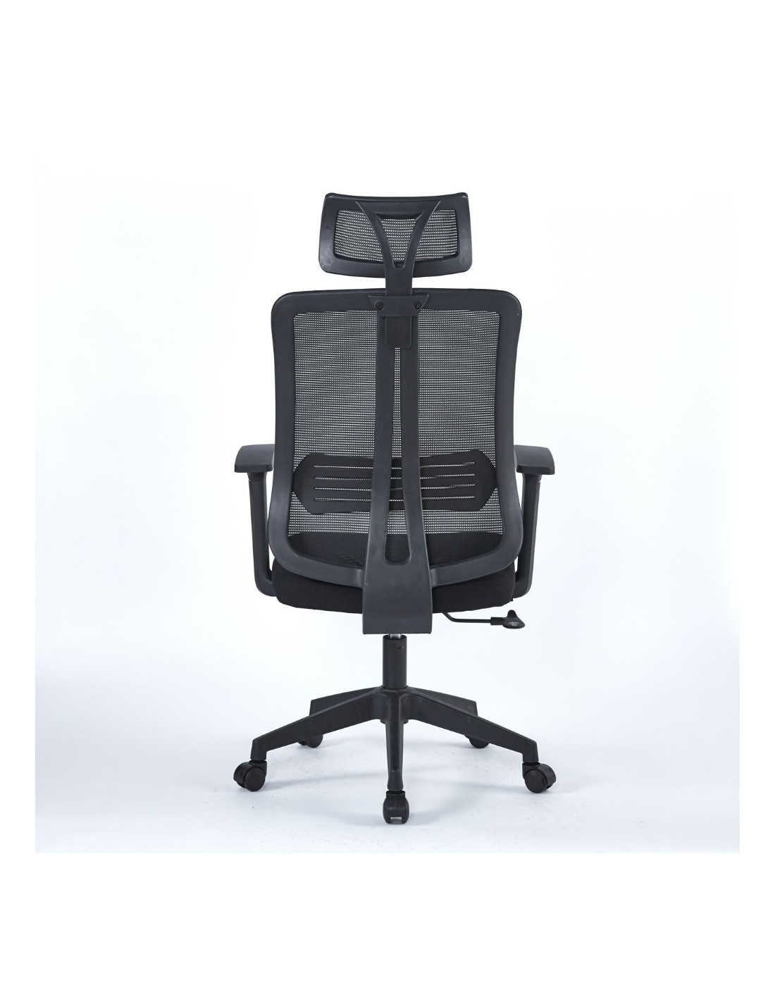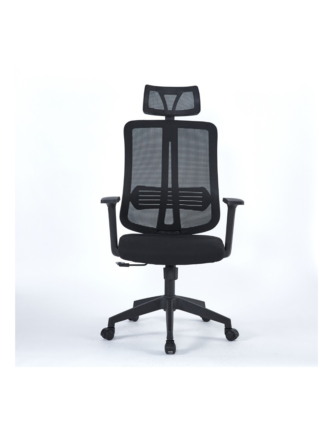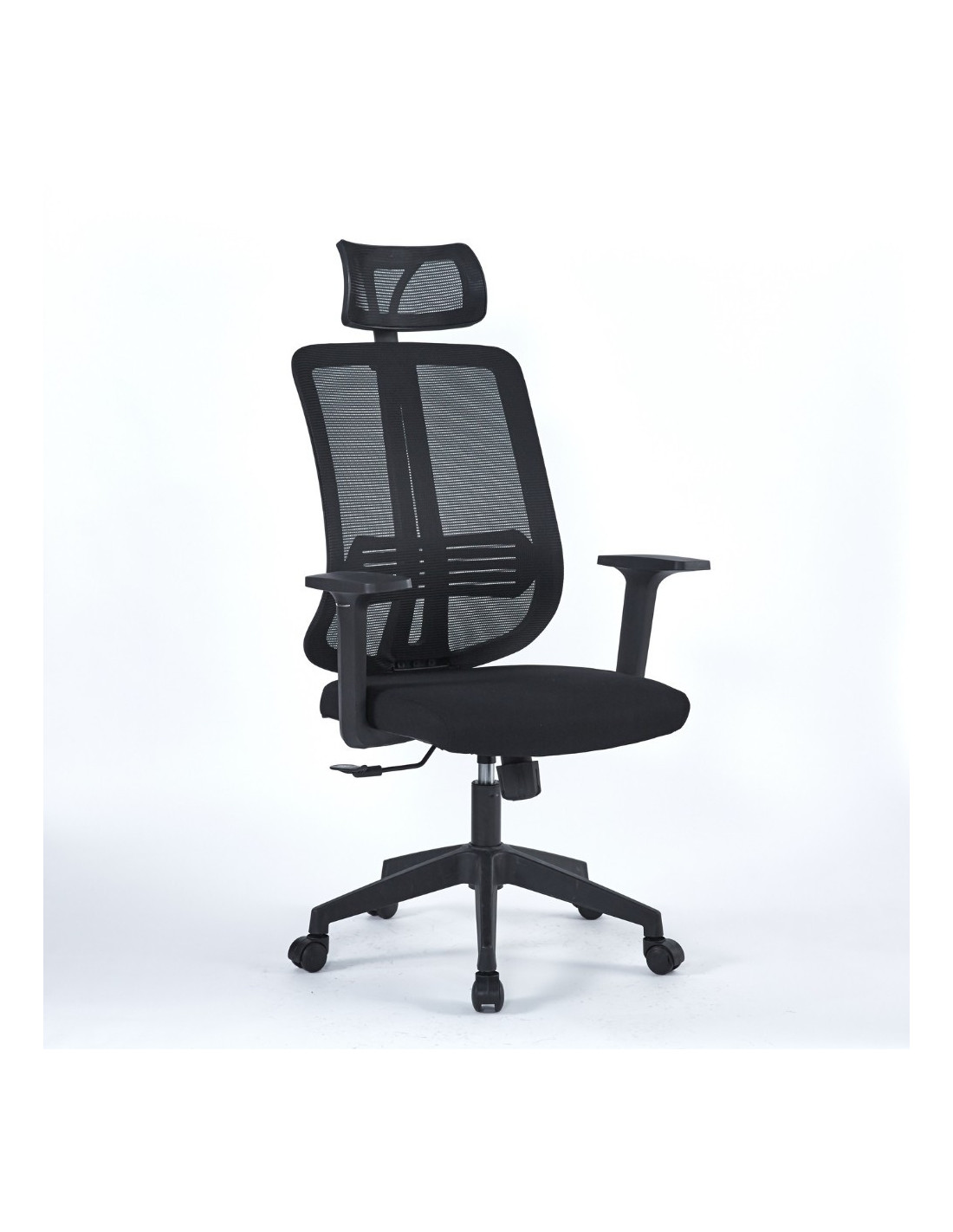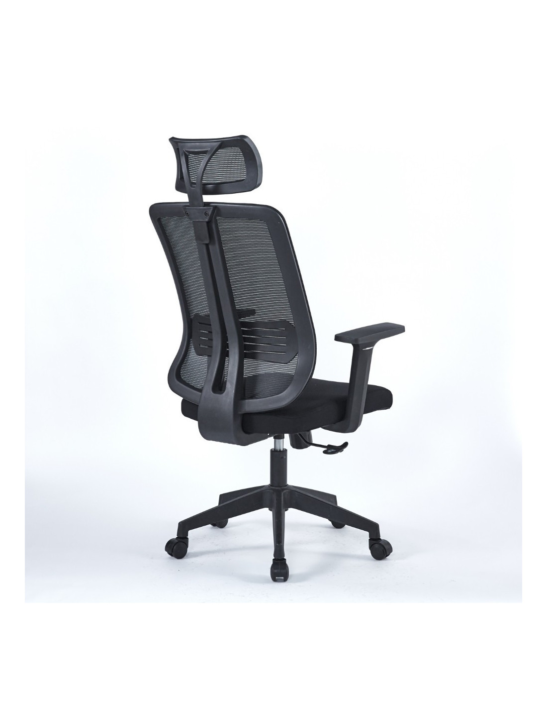 Poltrona ufficio Satia in tessuto e mesh nero con base nera