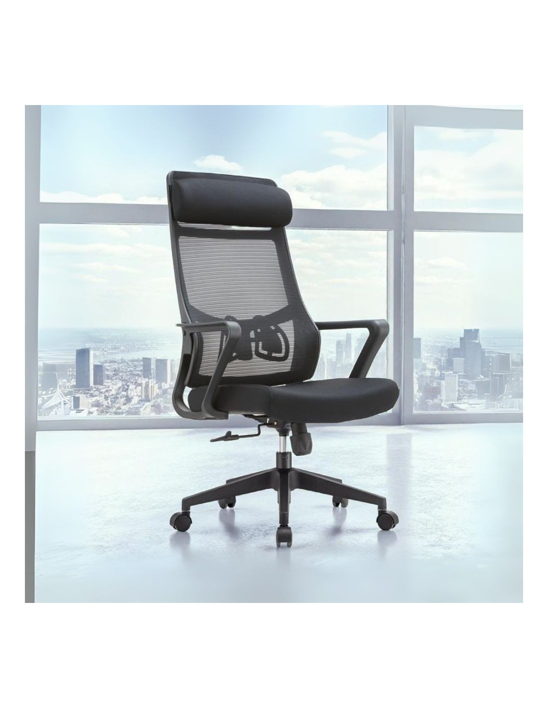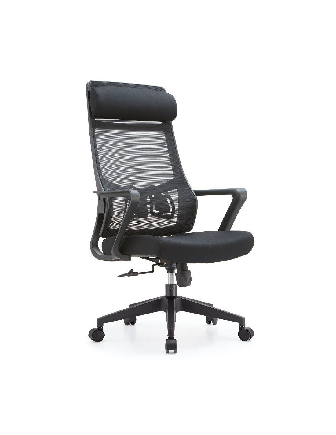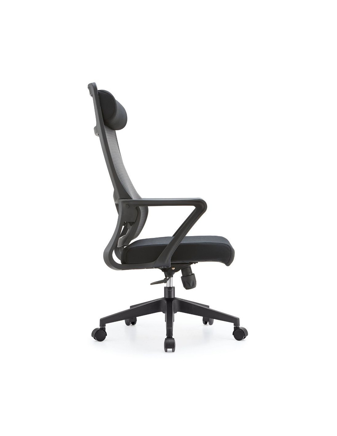 Poltrona ufficio Pasco con schienale in rete alto e reclinabile colore nero