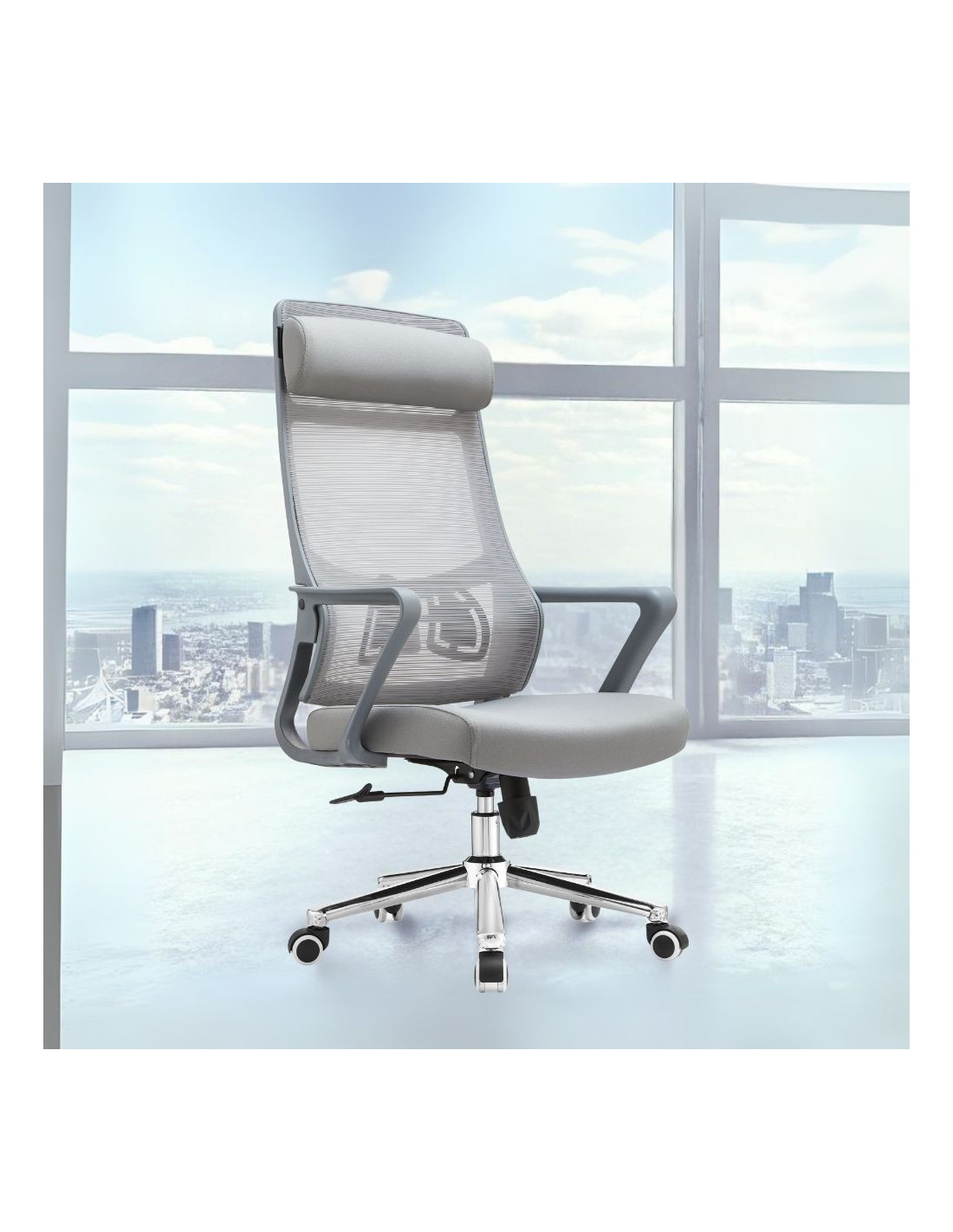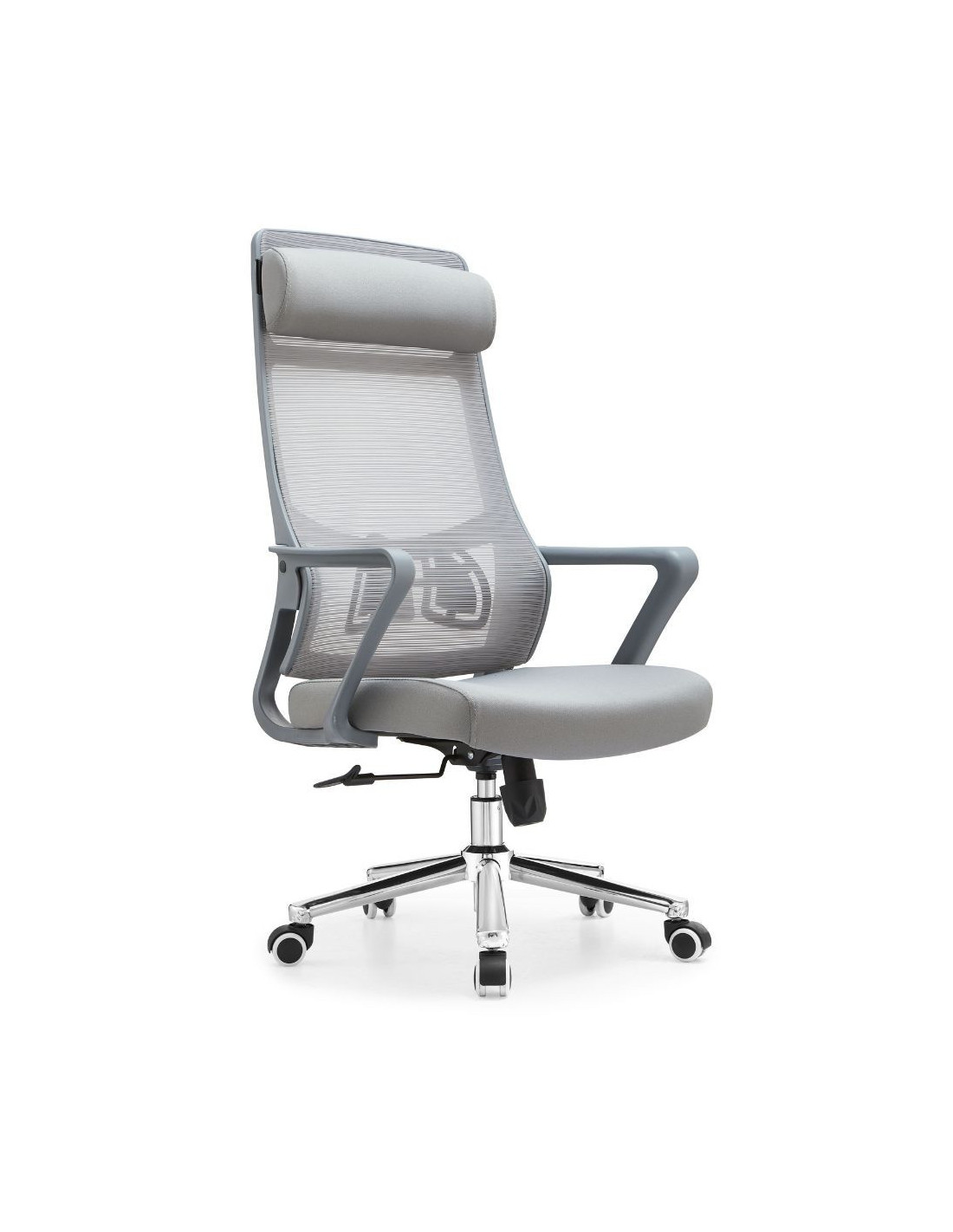 Poltrona ufficio Pasco con schienale in rete alto e reclinabile colore grigio