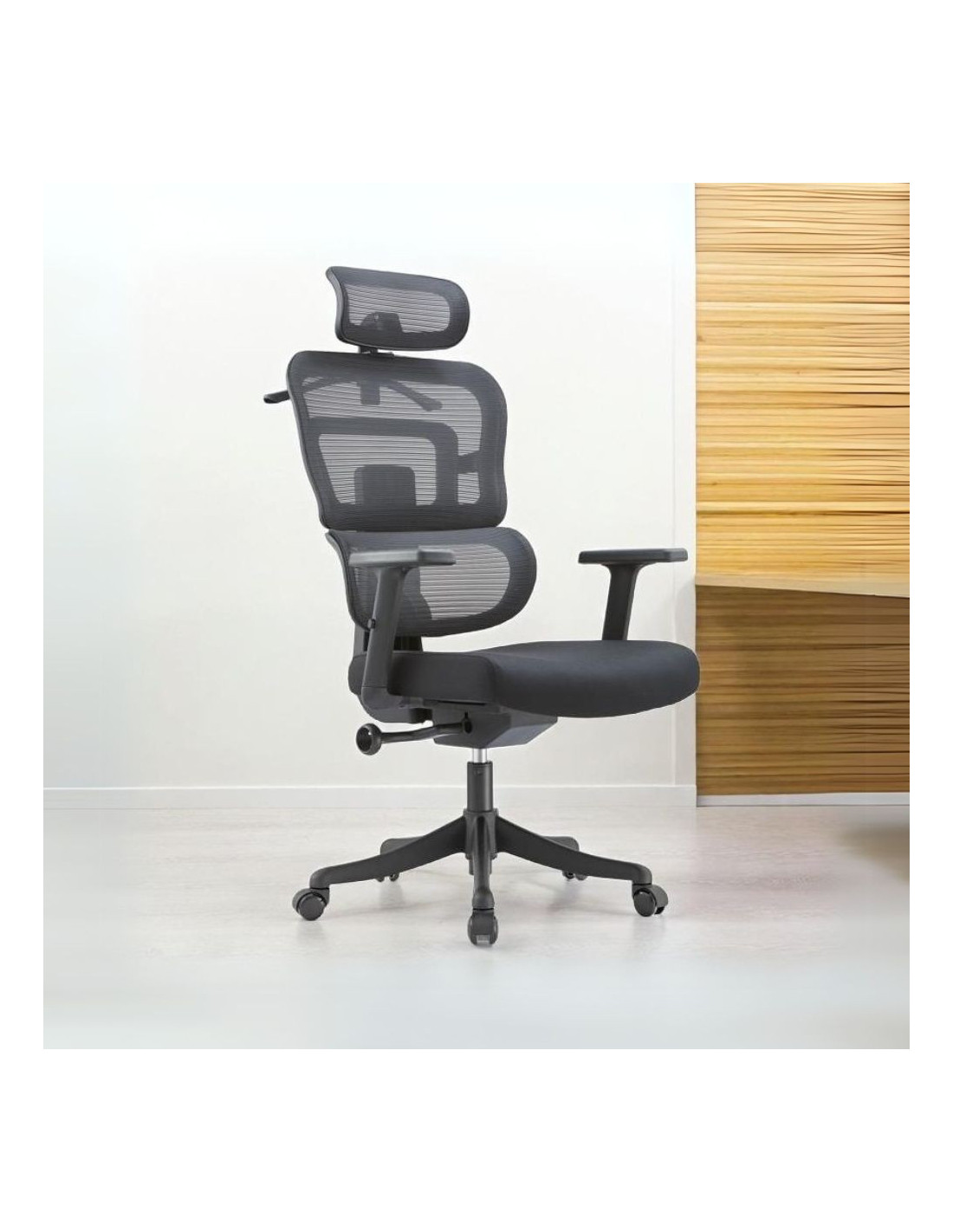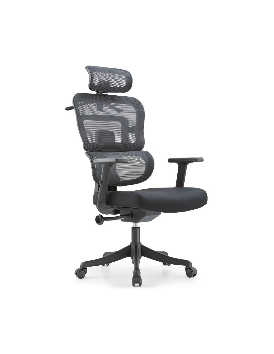 Poltrona ufficio Pumo con schienale in rete e poggiatesta regolabile colore nero