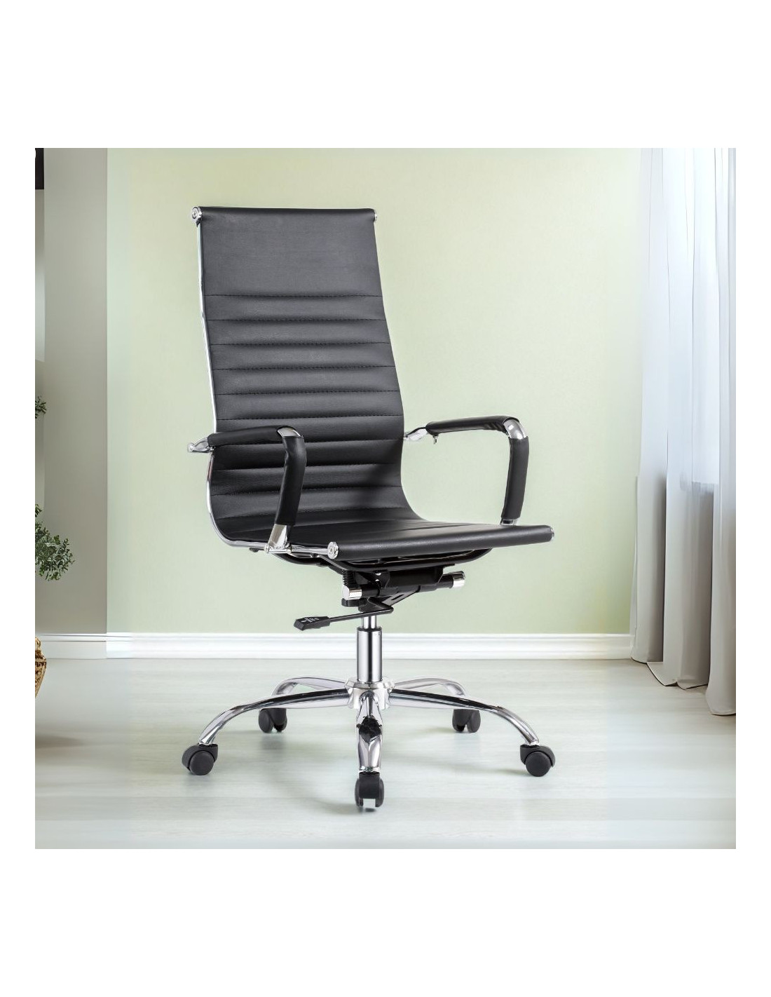 Poltrona per ufficio CR552H in pvc colore nero con base cromata