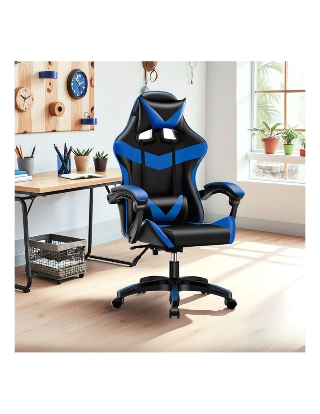 Sedia da ufficio Gaming con schienale alto e imbottitura in PVC colore nero con dettagli blu