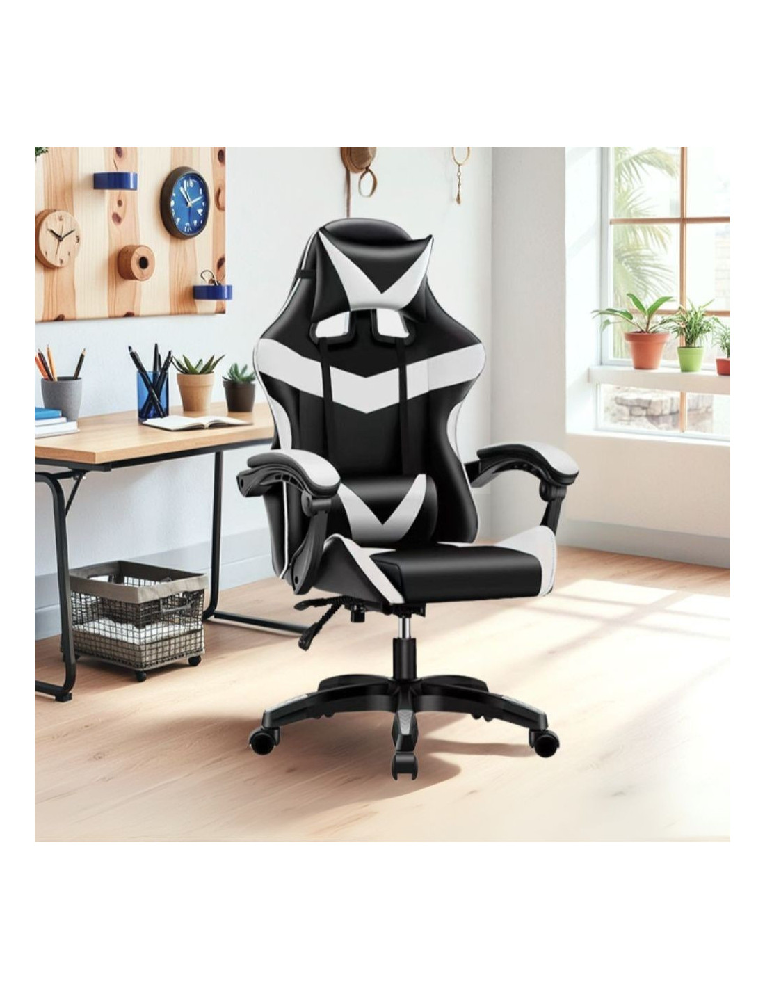 Sedia da ufficio Gaming con schienale alto e imbottitura in PVC colore nero con dettagli bianco