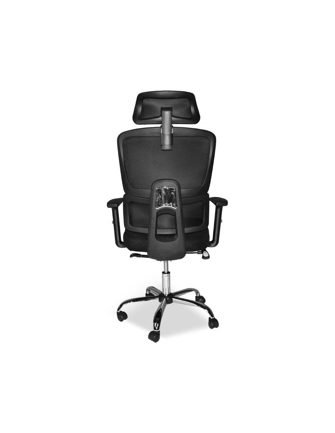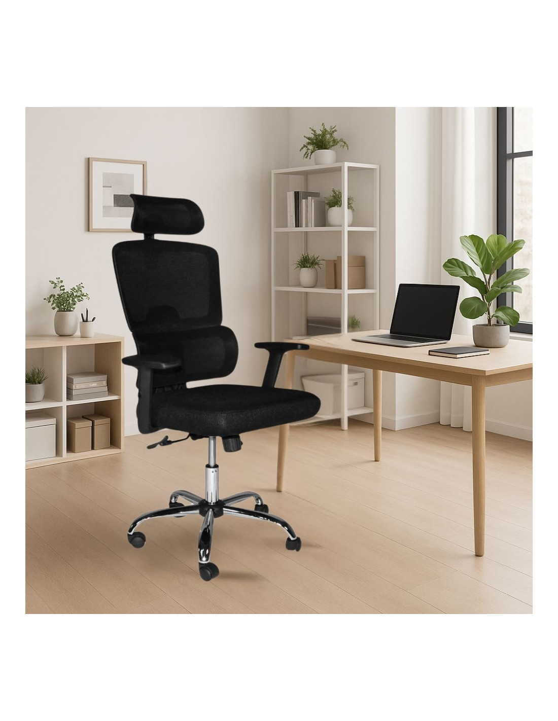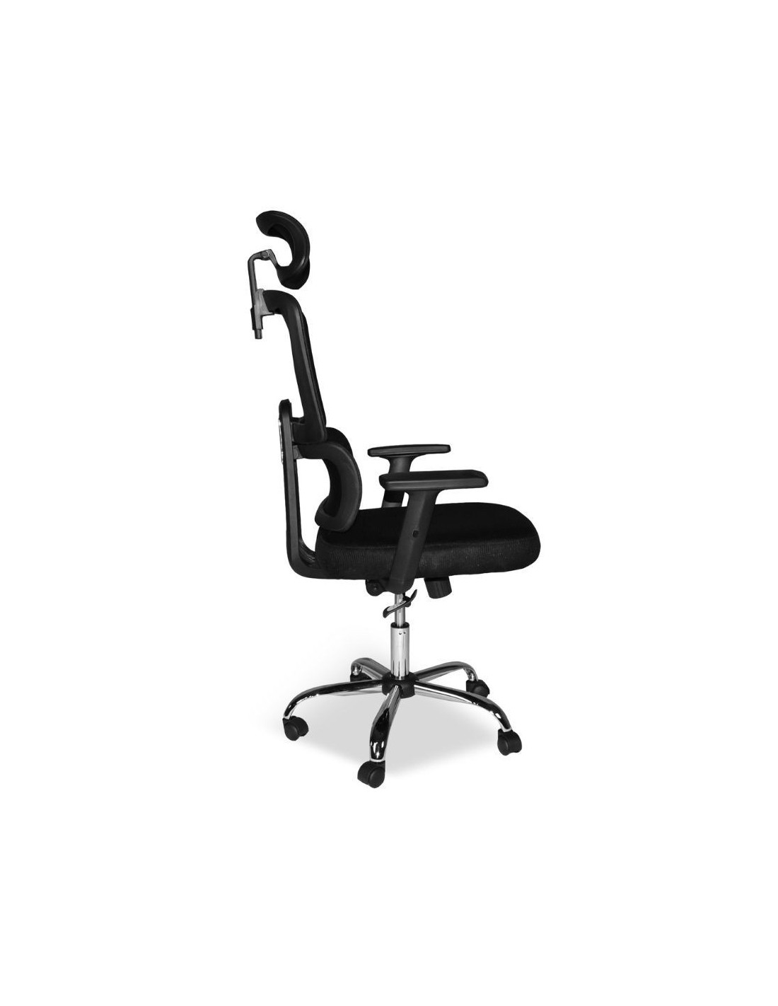 Poltrona per ufficio Ant con schienale in rete e poggiatesta regolabile con base cromata colore nero
