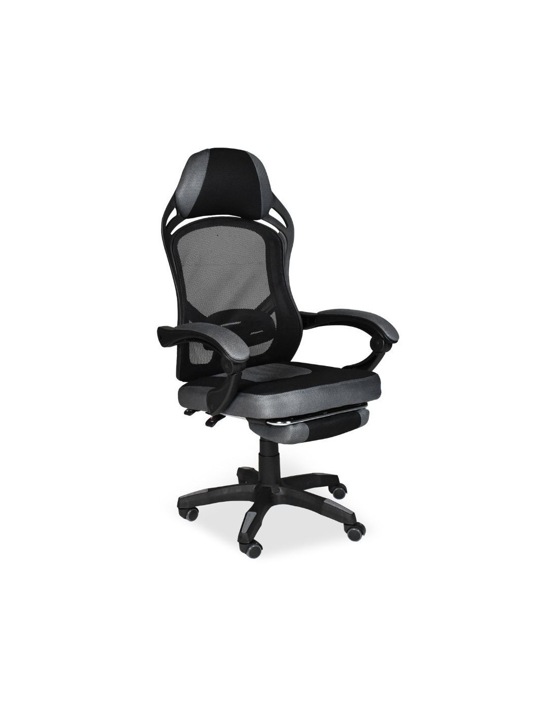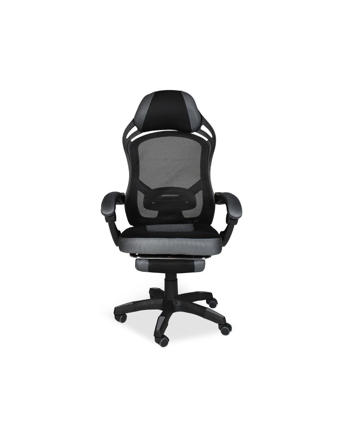 Sedia gaming Gandi con poggiapiedi estensibile in tessuto con rete nero